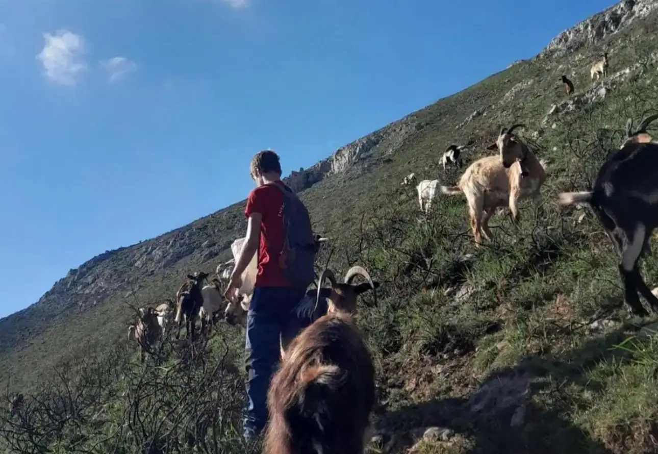 Tan a punto como lo vio, muy de cerca, el joven ganadero Enrique Huerta García, conocido por todos sus vecinos cariñosamente como Kike. Eran las ocho de la tarde y, como cada día, tras las tareas del Instituto y las de la ganadería en la que ayuda a sus padres, Marián García y Vicente Huerta, Kike se encaminó por las empinadas cuestas de la falda sur de la sierra de Santianes hacia el lugar donde pastan sus cabras.