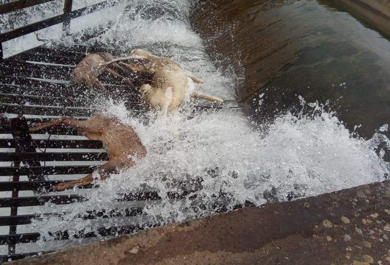 El canal de Arriola, a su paso por el municipio de Valdefresno, a la altura de Paradilla de la Sobarriba, ha vuelto a aparecer este fin de semana con nuevos animales muertos. En concreto, el canal se ha vuelto a cobrar la vida de cuatro corzos, después de que la semana pasada aparecieran también otros siete animales de la misma especie ahogados en el mismo lugar.