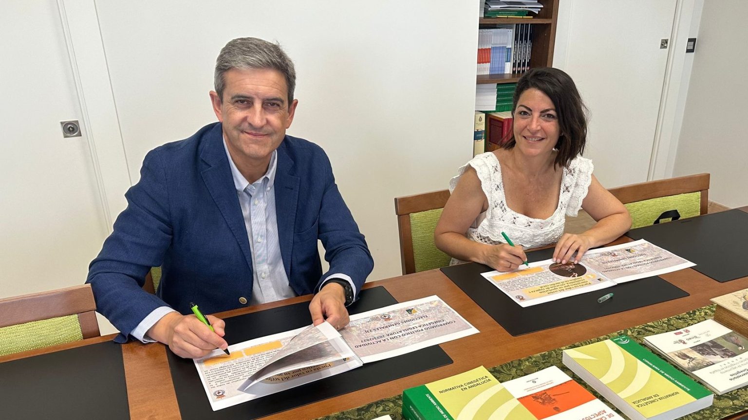 La firma del documento se ha producido este jueves 20 en la sede de la Federación Andaluza de Caza (FAC) en Granada, en un acto en el que han participado por parte de Caminando Juntos su presidenta, Macarena Olona, su candidato al Senado también por Granada, Emilio Jiménez, y por parte del sector cinegético el vicepresidente primero de la RFEC y presidente de la FAC, José María Mancheño, el secretario general de la FAC, Jorge Pérez Cornejo, y el delegado provincial de la FAC en Granada, Adelardo Villafranca.