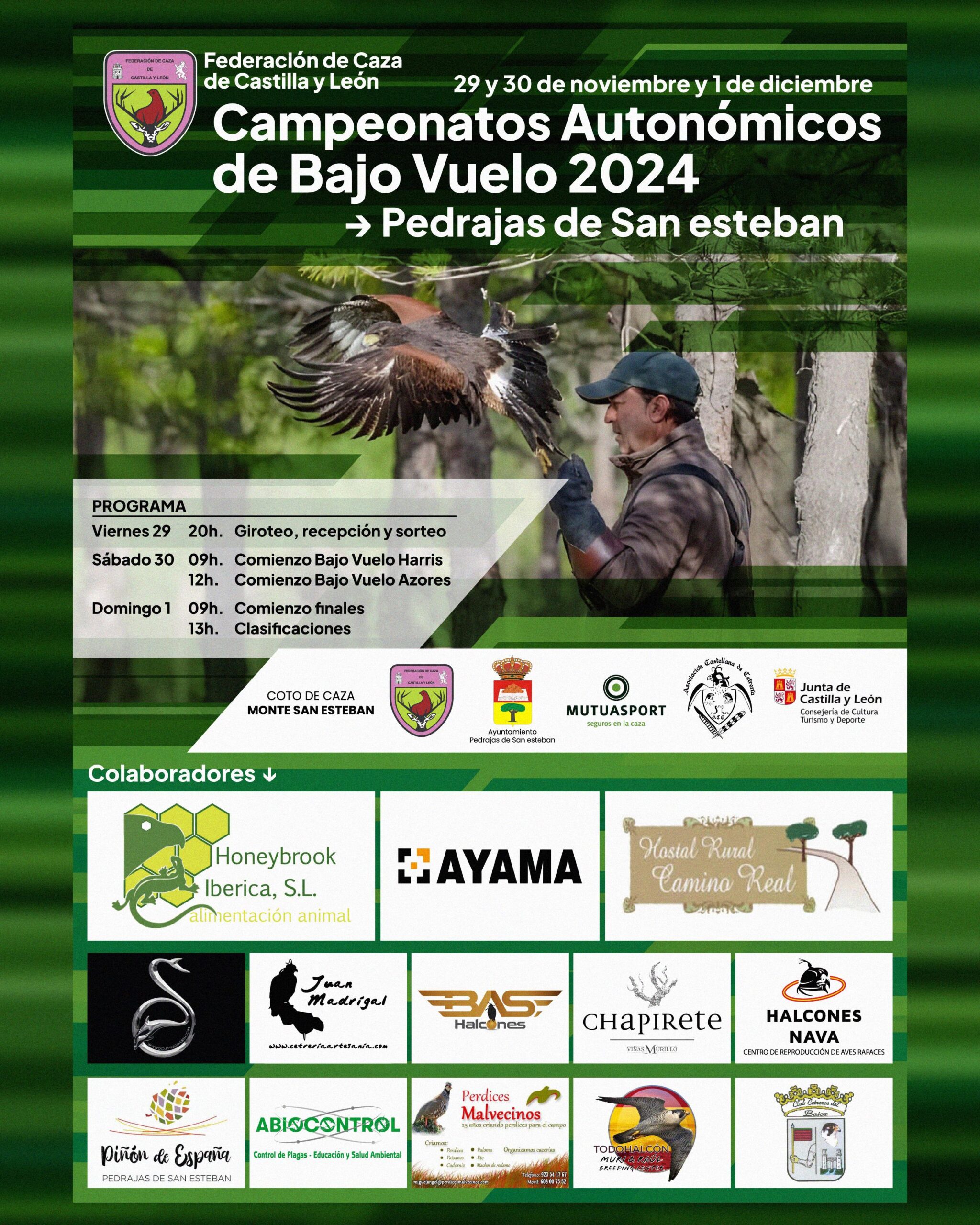CAMPEONATOS AUTONÓMICOS DE BAJO VUELO 2024 (Pedrajas de San Esteban) View Larger Image Pedrajas de San Esteban (Valladolid) 30 y 31 de noviembre y 1 de Diciembre 2024 Oscar Hernandez 2024-11-21T10:56:43+01:00 21 noviembre, 2024|Actualidad Federativa| Compártelo en las redes sociales FacebookTwitterLinkedinGoogle+PinterestEmail Noticias relacionadas CONCLUSIONES DEL FORO NACIONAL DE LA CODORNIZ ORGANIZADO POR LA FEDERACIÓN DE CAZA DE CASTILLA Y LEÓN. 13 marzo, 2026 COMPROMISO POLÍTICO Y CIUDADANO CON LA ACTIVIDAD CINEGÉTICA 12 marzo, 2026 COMPROMISO POLÍTICO Y CIUDADANO CON LA ACTIVIDAD CINEGÉTICA 12 marzo, 2026