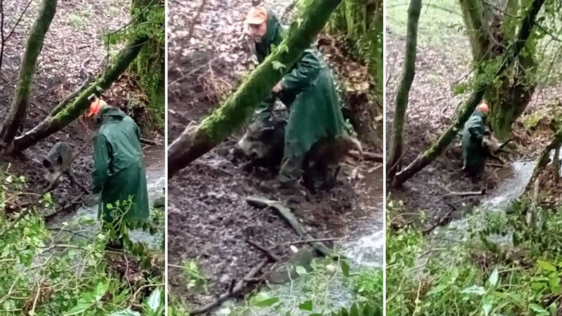 Hoy, yendo a las becadas, tocó liberar a esta porquiña”, nos señala un cazador gallego que ha demostrado, una vez más, quién se preocupa y, además, se mancha las manos para proteger a los animales que lo necesitan.