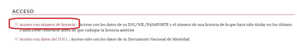 Haz clic y remarca el acceso por medio de numero de licencia desde el enlace que hemos puesto.