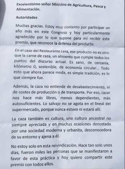 //El discurso en defensa de la actividad cinegética de un chef zamorano que se hace viral en las redes sociales