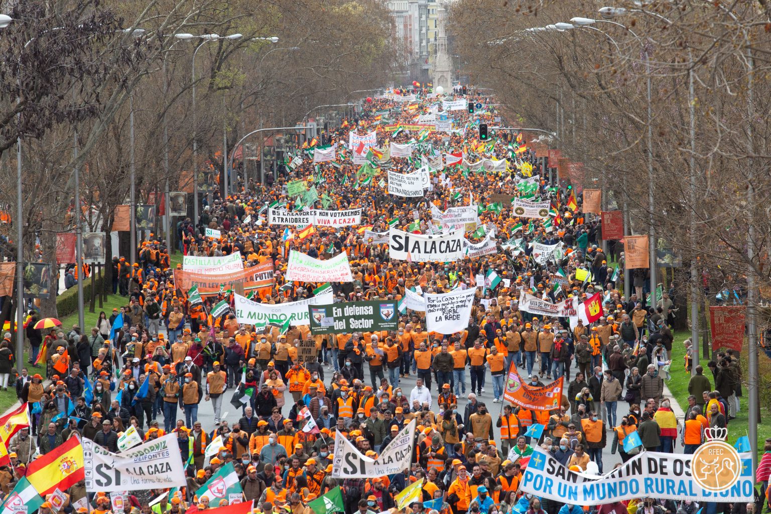 Si tenemos que explicarles a nuestros gobernantes la importancia del sector primario es evidente que nunca debieron llegar a ser dirigentes, si hay que explicarles que regular estas actividades sin contar con los afectados es una legislación totalitaria, sólo escuchando a minorías radicales que basan su opinión visceral en el odio hacia los que, en su ignorancia medioambiental considera enemigos, pero sólo son gente y actividades del campo que está peleando por su medio de vida. De esta forma tenemos los ingredientes para provocar una movilización como la del 20 de marzo, porque están asfixiando la agricultura y la ganadería y en su ignorancia cargan con especial saña contra la caza. El domingo 20 de marzo los cazadores, ganaderos y agricultores colapsaron Madrid en una manifestación pacífica, ejemplar e histórica, desbordaron todas las expectativas, hay medios que citan 800.000 personas y se confirmaron más de 1500 autocares, si tal despliegue no hace ver a nuestros políticos que algo se está haciendo mal, que alguien se está equivocando, mal vamos. La ganadería y agricultura son imprescindibles, estas actividades serían poco menos que imposible sin la caza como herramienta de gestión, auténticas plagas de conejos, jabalíes o ciervos arrasan cultivos y provocan accidentes en carreteras.