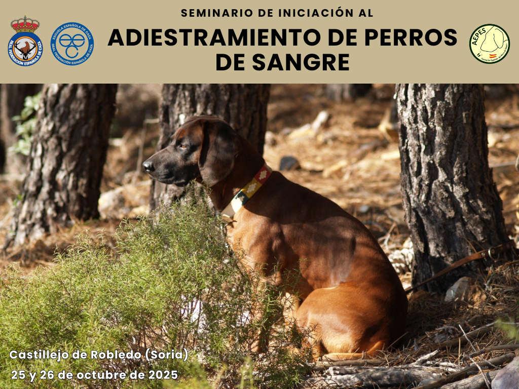 La Real Federación Española de Caza (RFEC), a través de su Escuela Española de Caza y en colaboración con la Asociación Española del Perro de Sangre (AEPES), celebrará los próximos 25 y 26 de octubre en Castillejo de Robledo (Soria) un Seminario de Iniciación al Adiestramiento de Perros de Sangre.