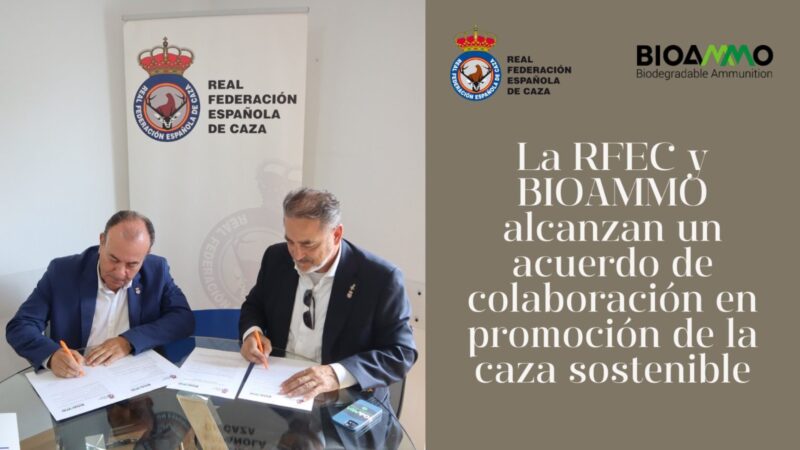 La Real Federación Española de Caza (RFEC) y la empresa BIOAMMO, fabricante de cartuchos 100% biodegradables y libres de plásticos, han firmado un convenio de colaboración con el que darán visibilidad al trabajo realizado por ambas entidades en pro de la sostenibilidad en la actividad cinegética y en las competiciones deportivas.