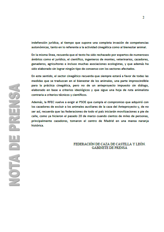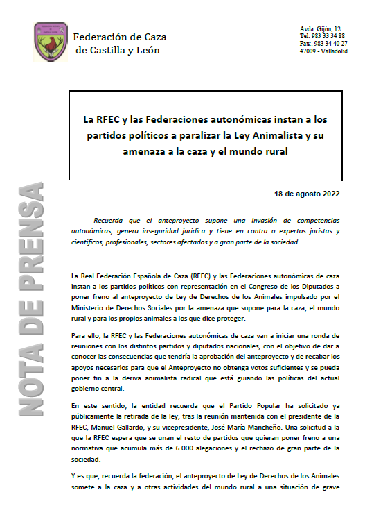 Inicio/Actualidad Federativa/La RFEC y las Federaciones autonómicas instan a los partidos políticos a paralizar la Ley Animalista y su amenaza a la caza y el mundo rural