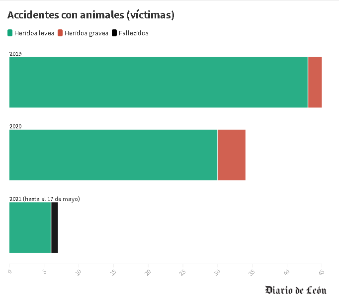 Por lo que se refiere a las carreteras con un mayor índice de siniestralidad por animales, destaca principalmente la N-120, que es además la cuarta con más accidentes a nivel nacional. La A-6. la N-VI, la N-621 y la CL-626 son otras de las más peligrosas en este sentido.