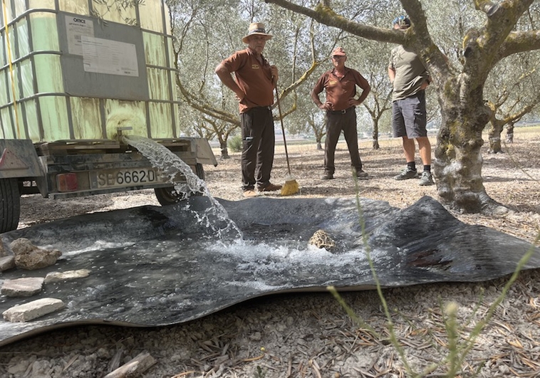 «Esta es una tarea que hacemos todos los días de lunes a viernes, no podemos faltar porque los animales ahora no encuentran agua por ningún sitio y tener los bebederos llenos es la única manera de que puedan sobrevivir a esta ola de calor» explica Domingo, guarda de la sociedad lebrijana desde hace más de 17 años.