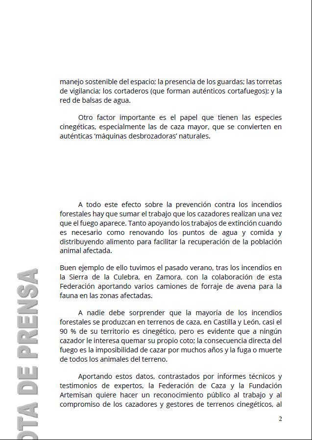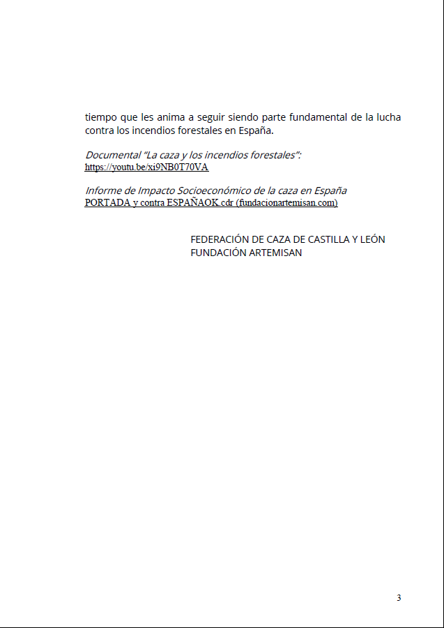 Los cazadores son esenciales contra los incendios View Larger Image Documental la caza y los incendios forestales. Informe de Impacto Socioeconómico de la caza en España Oscar Hernandez 2023-04-20T14:00:38+02:00 20 abril, 2023|Actualidad Federativa| Compártelo en las redes sociales FacebookTwitterLinkedinGoogle+PinterestEmail Noticias relacionadas CONCLUSIONES DEL FORO NACIONAL DE LA CODORNIZ ORGANIZADO POR LA FEDERACIÓN DE CAZA DE CASTILLA Y LEÓN. 13 marzo, 2026 COMPROMISO POLÍTICO Y CIUDADANO CON LA ACTIVIDAD CINEGÉTICA 12 marzo, 2026 COMPROMISO POLÍTICO Y CIUDADANO CON LA ACTIVIDAD CINEGÉTICA 12 marzo, 2026