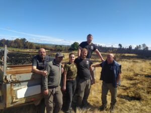 Quiero hacer una mención especial -sin hacer de menos al resto- a una persona que estuvo ayudando en este grupo, se trata de Paola Muñoz Pérez, joven cazadora, aficionada al tiro y con pasión por la caza. Paola ha estado siempre muy vinculada a la caza y a la Sierra de la Culebra, la sierra donde su Padre, Cesáreo Muñoz falleció en acto de servicio como guarda forestal acompañando a un cazador en un rececho, la sierra de Cesáreo, para la que vivió y donde nos dejó, quiero decirte, Paola, que aunque sin ninguna duda Cesáreo habrá llorado en el cielo al ver la catástrofe, ha sonreído y sacado orgullo al ver a su hija dar un paso adelante para ayudar a salvar su sierra y sus gentes, Gracias Paola y gracias a tu padre por inculcarte los valores que tienes, eres un gran ejemplo compañera.