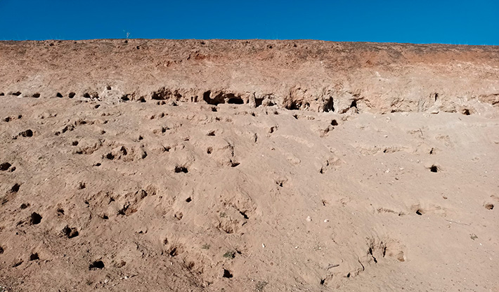 Fotografía: Las madrigueras abundan en el talud del ferrocarril a su paso por Valdestillas. Autor: Jesús Manuel Recio