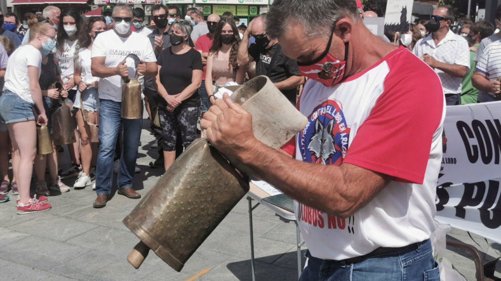 //Masiva cencerrada en Jaca como protesta contra el lobo y el oso