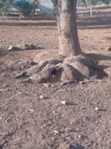 Los ataques al ganado vivo por parte de bandadas de buitres se han intensificado en la provincia Huelva, ya que gran parte del territorio se encuentra en zona de protección para la alimentación de especies necrófagas de interés comunitario, con la mayor concentración en los montes El Mustio, entre los municipios de Aroche, Almonaster, Cortegana y Rosal de la Frontera. En el último suceso terminó con la vida de 37 ovejas solo dos horas