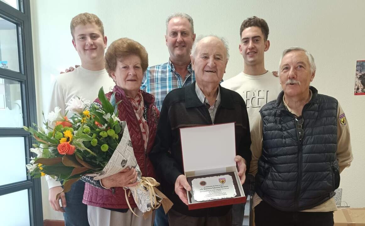 Doble reconocimiento para este cazador con mayúsculas, por su fidelidad a la caza y a la Federación y también por haber sabido trasmitir esta afición a sus descendientes cuando en muchas ocasiones se está perdiendo esta pasión por los más jóvenes.