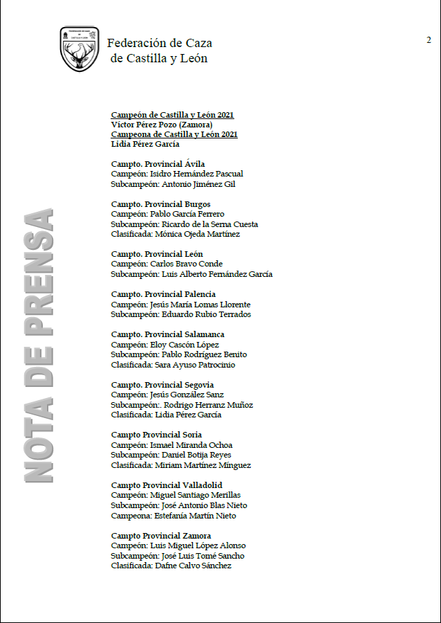XXXII CAMPEONATO DE CASTILLA Y LEÓN DE CAZA MENOR CON PERRO View Larger Image Oscar Hernandez 2022-11-03T10:40:48+01:00 3 noviembre, 2022|Actualidad Federativa| Compártelo en las redes sociales FacebookTwitterLinkedinGoogle+PinterestEmail Noticias relacionadas Gran Premio Diputación de Zamora de San Huberto, II Memorial Castor Novoa 25 marzo, 2026 La RFEC presenta alegaciones al Real Decreto de Núcleos Zoológicos para garantizar una regulación viable para la caza 25 marzo, 2026 La unión de la RFEC y Mutuasport marca el éxito de una edición récord de la feria Cinegética+SCI 2026 25 marzo, 2026